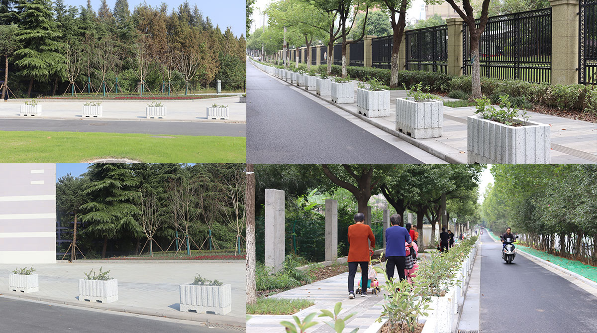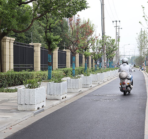 仿石材花箱式人行道隔離設(shè)施,不僅可防止車輛進入人行道破壞人行道板磚和路側(cè)石等市政設(shè)施,而且花箱內(nèi)綠植又增加了道路綠化量,提升了道路的景觀性,達到了實用性與美觀性相結(jié)合的雙重效果。宏路仿石材花箱采用機壓式特殊制作工藝,比以往木質(zhì)、鐵質(zhì)、鋁質(zhì)、PVC等材質(zhì)的花箱,透氣性和透水性更好,植物生長更為旺盛。
