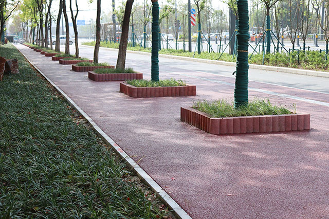 平樹池一般比鋪裝路面低一些,這樣有利于收集、消納路面雨水徑流,在一定程度上,增加了凈水與蓄水功能,提高了生態(tài)效益。樹池中精心配置的花草灌木及地被植物,不僅對樹木的生長發(fā)育極為有利,還能增加城市綠化量,改善道路景觀。