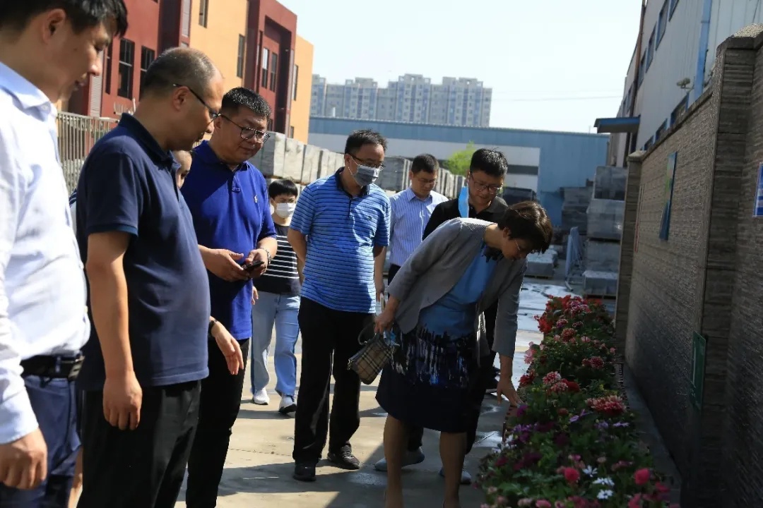 領(lǐng)導(dǎo)們隨后移步至一號(hào)辦公樓前,近距離觀摩公司花箱式交通隔離護(hù)欄、花箱式人行道隔離護(hù)欄以及仿石樹池等新型仿石材產(chǎn)品。