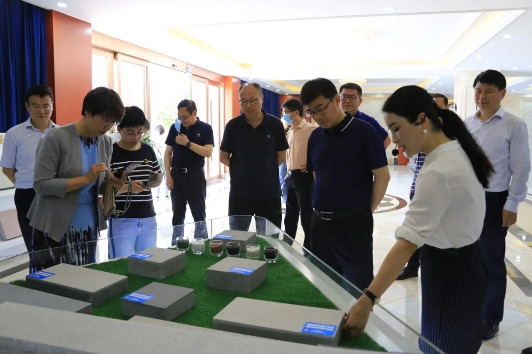 最后,領(lǐng)導(dǎo)們一行來到公司的產(chǎn)品展示園,參觀劈裂圍墻、仿石材系列產(chǎn)品的鋪設(shè)樣段及透水混凝土、壓膜混凝土等樣品段。