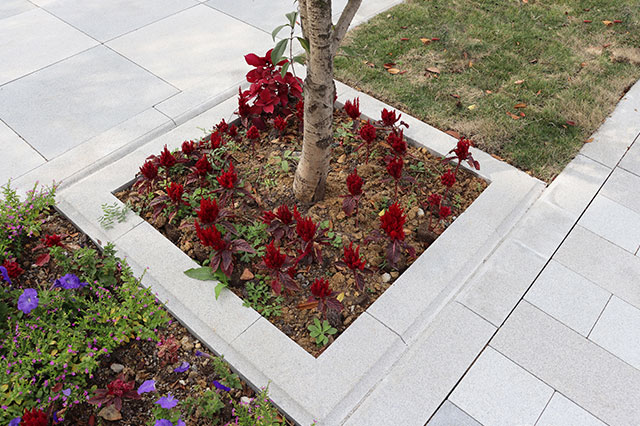 平樹池一般比鋪裝路面低一些,這樣有利于收集、消納路面雨水徑流,在一定程度上,增加了凈水與蓄水功能,提高了生態(tài)效益。樹池中精心配置的花草灌木及地被植物,不僅對樹木的生長發(fā)育極為有利,還能增加城市綠化量,改善道路景觀。